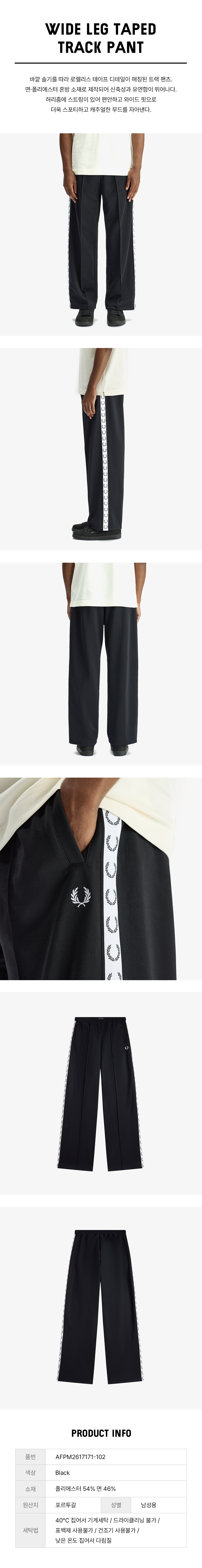 프레드페리 와이드 레그 테잎 트랙 팬츠 블랙