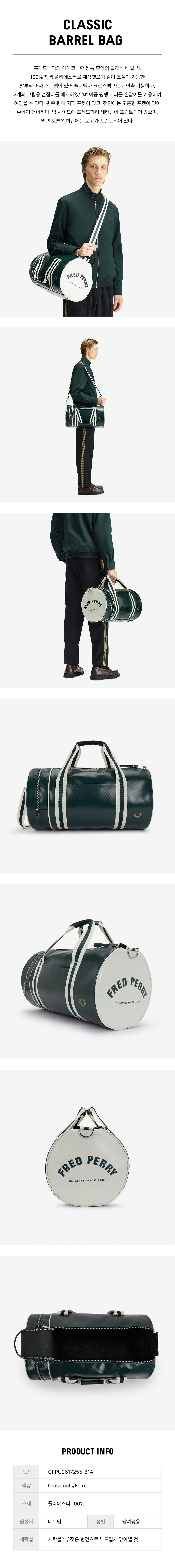 프레드페리 클래식 배럴 백 그래스루츠 에크루