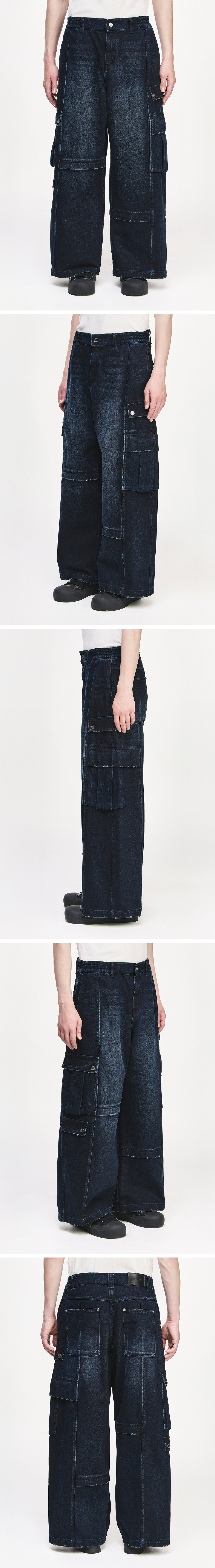 송지오 컬렉션 메타 레이어드 카고 와이드 데님 다크블루