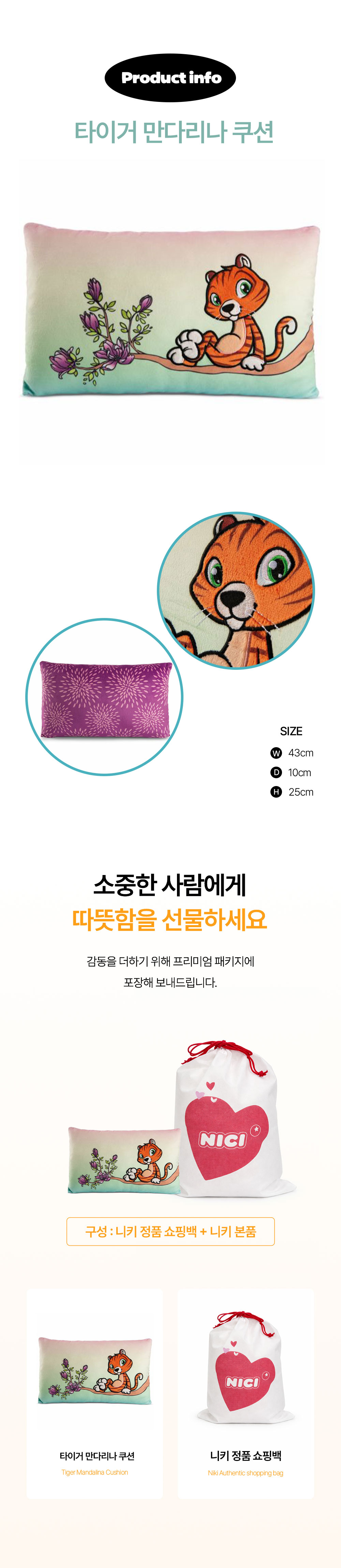 니키 타이거 만다리나 쿠션 43x25cm