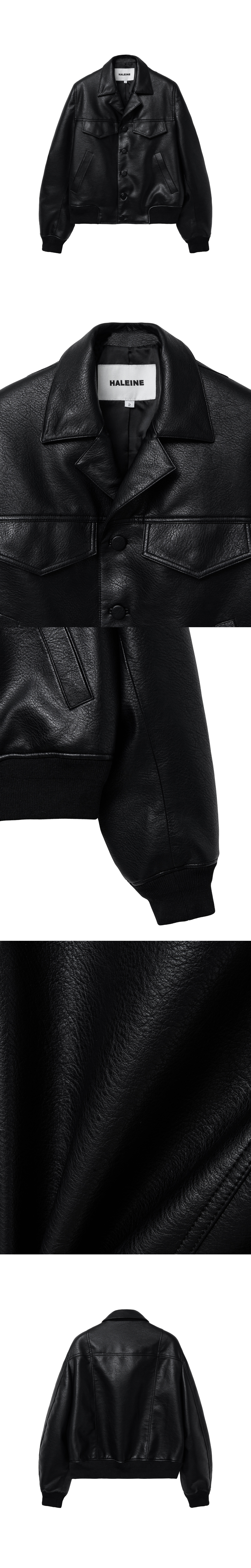 Haleine Faux Leather Open Collar Blouson Black (XJ107)