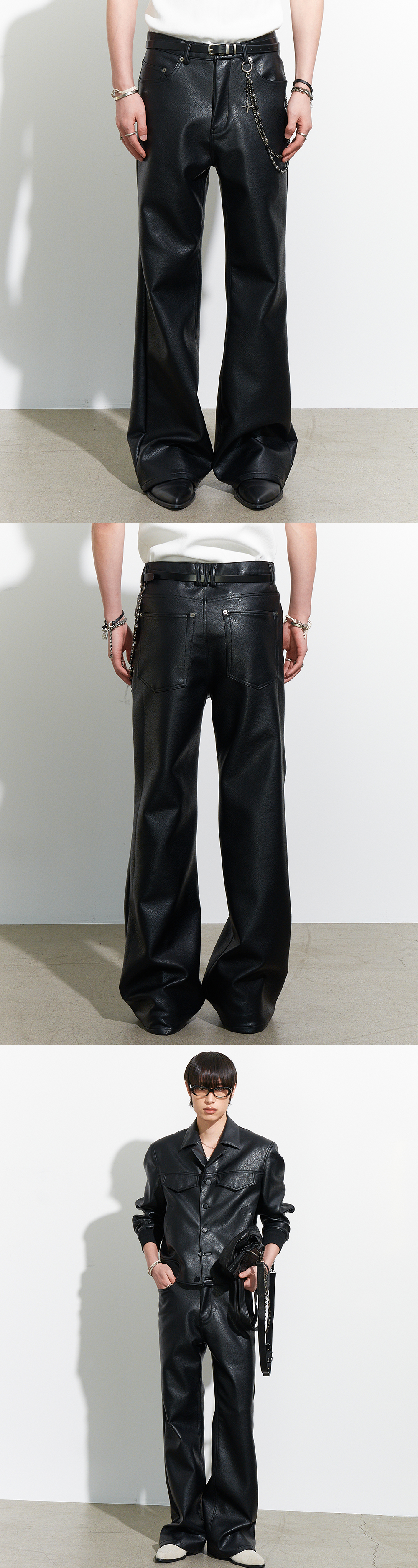 Haleine Faux Leather Relaxed Bootcut Pants Black (XB104)