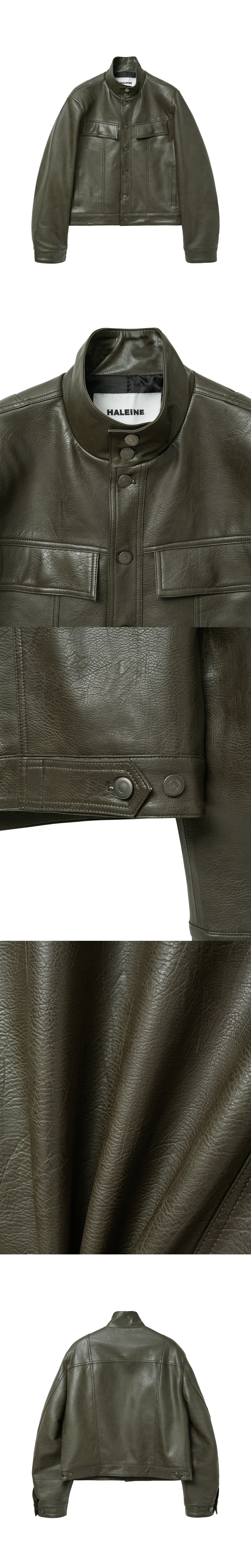 Haleine Faux Leather High Neck Trucker Olive (XJ117)