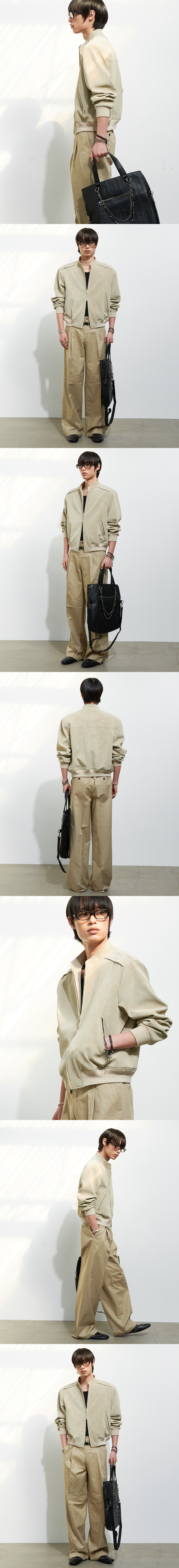벨루어 텍스처의 원단으로 제작된 스탠드 칼라 블루종입니다. 부드러운 표면감과 은은한 광택이 어우러져 차분하면서도 세련된 인상을 형성합니다. 스탠드 칼라 구조와 어깨 패드, 견장 디테일이 상체 실루엣을 또렷하게 잡아주며 구조적인 균형을 완성합니다. -DETAIL- 스탠드 칼라 디자인 어깨 패드 내장 어깨 견장 디테일 프런트 지퍼 여밈 사이드 지퍼 포켓 밑단·소맷단 립 조직 마감 MADE IN KOREA
