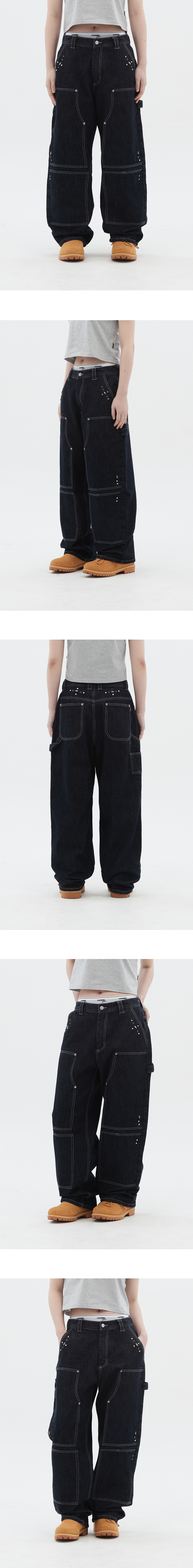 Dominant Stud Detail Carpenter Denim Pants Indigo