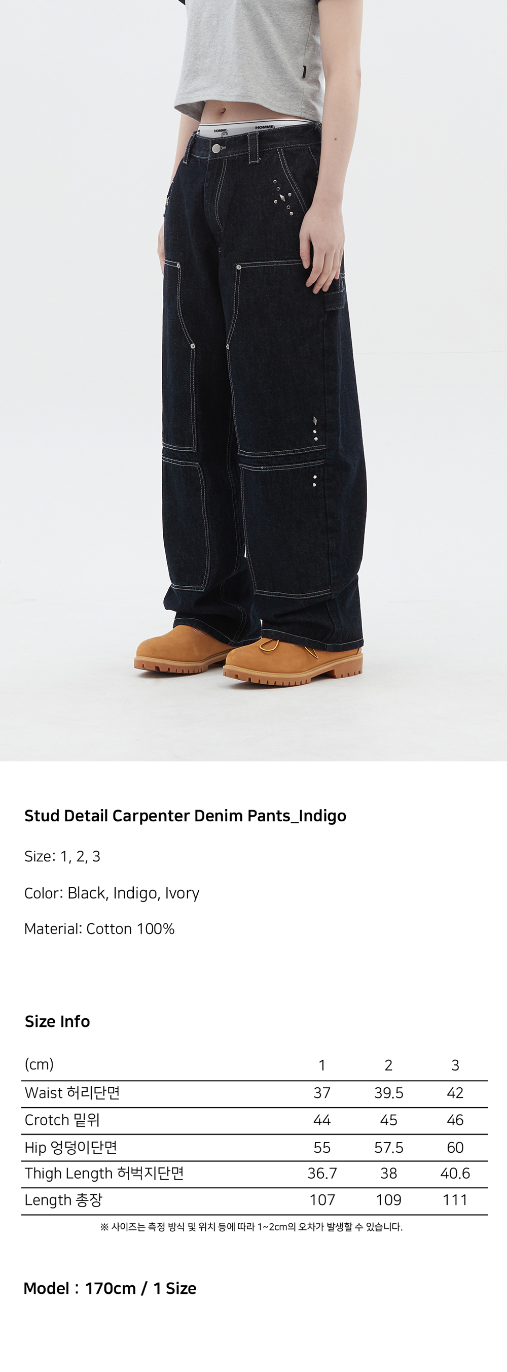 도미넌트 스터드 디테일 카펜터 데님 팬츠 인디고