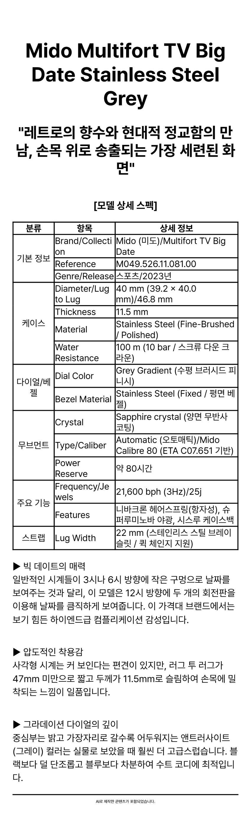미도 멀티포트 TV 빅 데이트 스테인리스 스틸 그레이