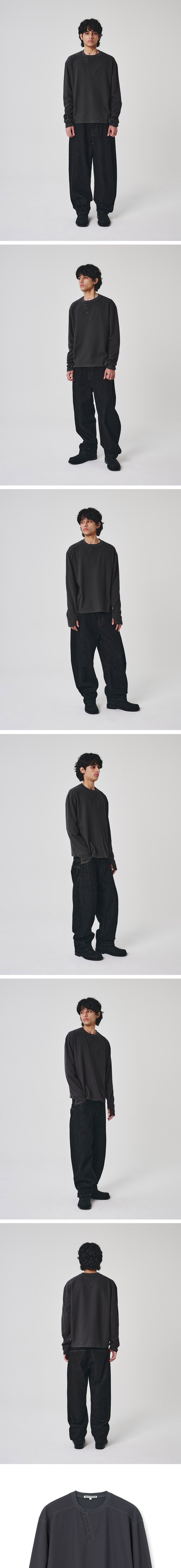 Millo Archive Dip Waffle Henley Neck Charcoal