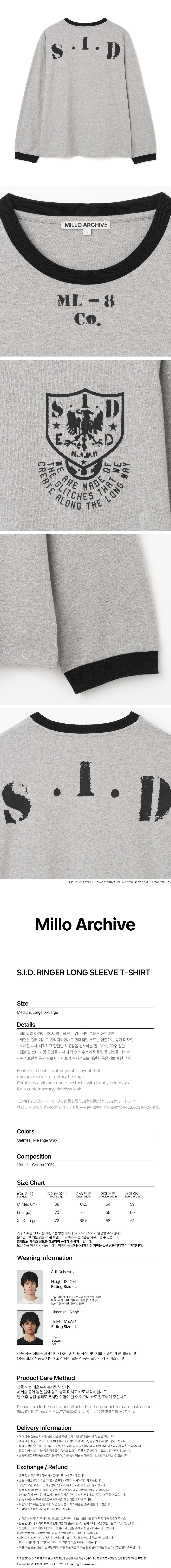 밀로 아카이브 S.I.D 링거 롱 슬리브 티셔츠 멜란지 그레이