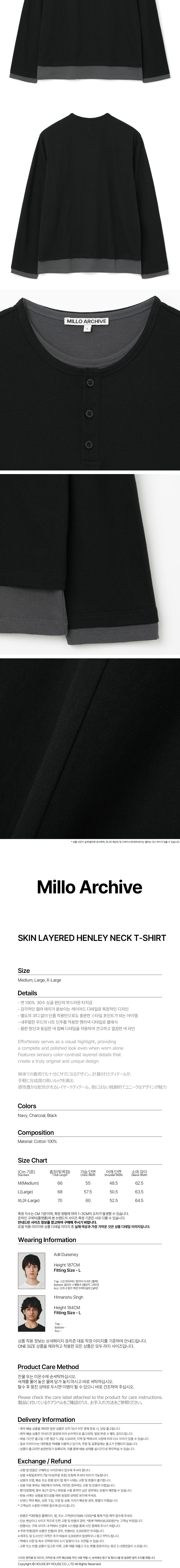 밀로 아카이브 스킨 레이어드 헨리넥 티셔츠 블랙