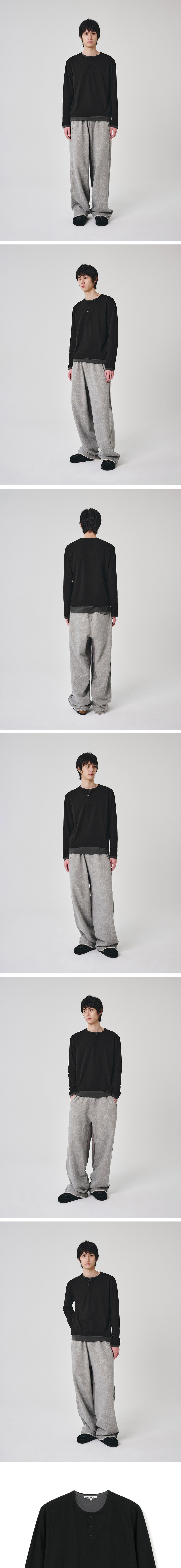 Millo Archive Skin Layered Henley Neck T-Shirt Black
