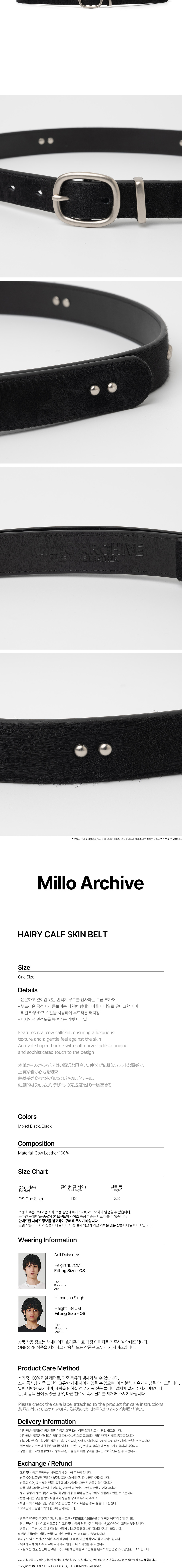 밀로 아카이브 헤어리 카프 스킨 벨트 블랙