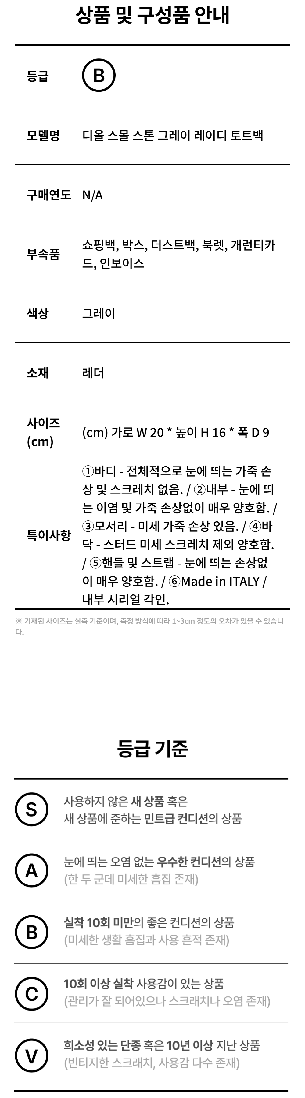 디올 스몰 스톤 그레이 레이디 토트백 D-A48462