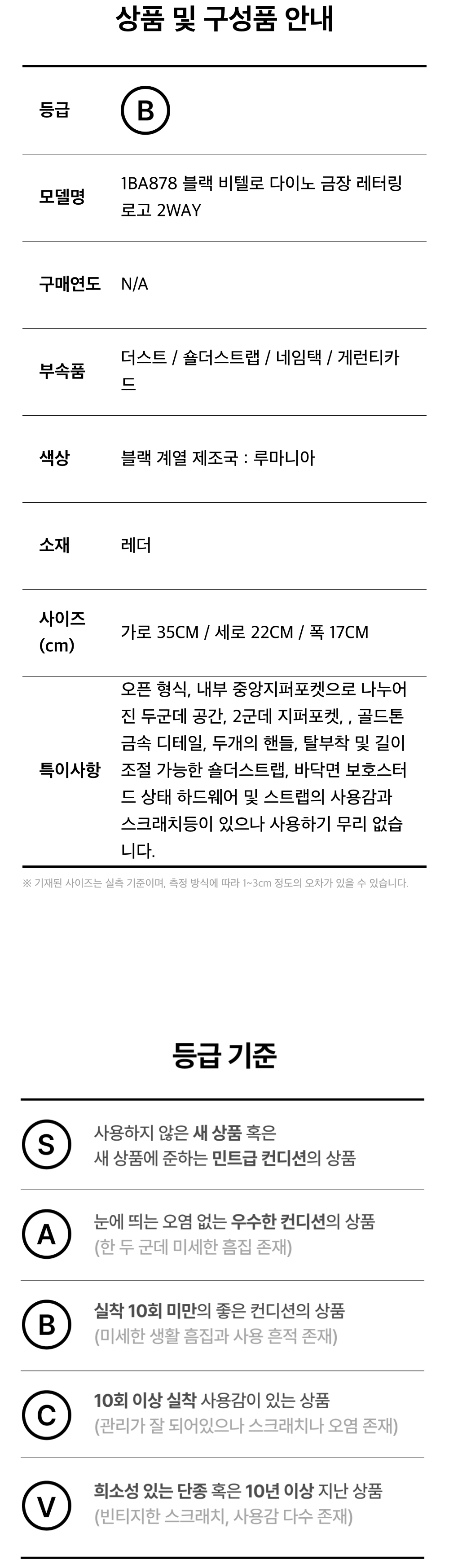 프라다 1BA878 블랙 비텔로 다이노 금장 레터링 로고 2WAY