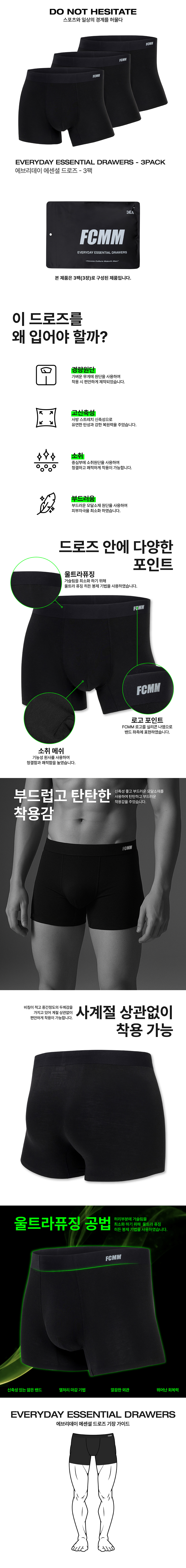 에프씨엠엠 스포츠 에브리데이 에센셜 드로즈 숏 블랙 3팩