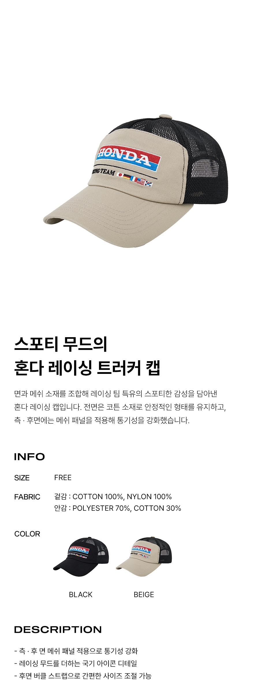 혼다 메쉬 트러커 캡 베이지