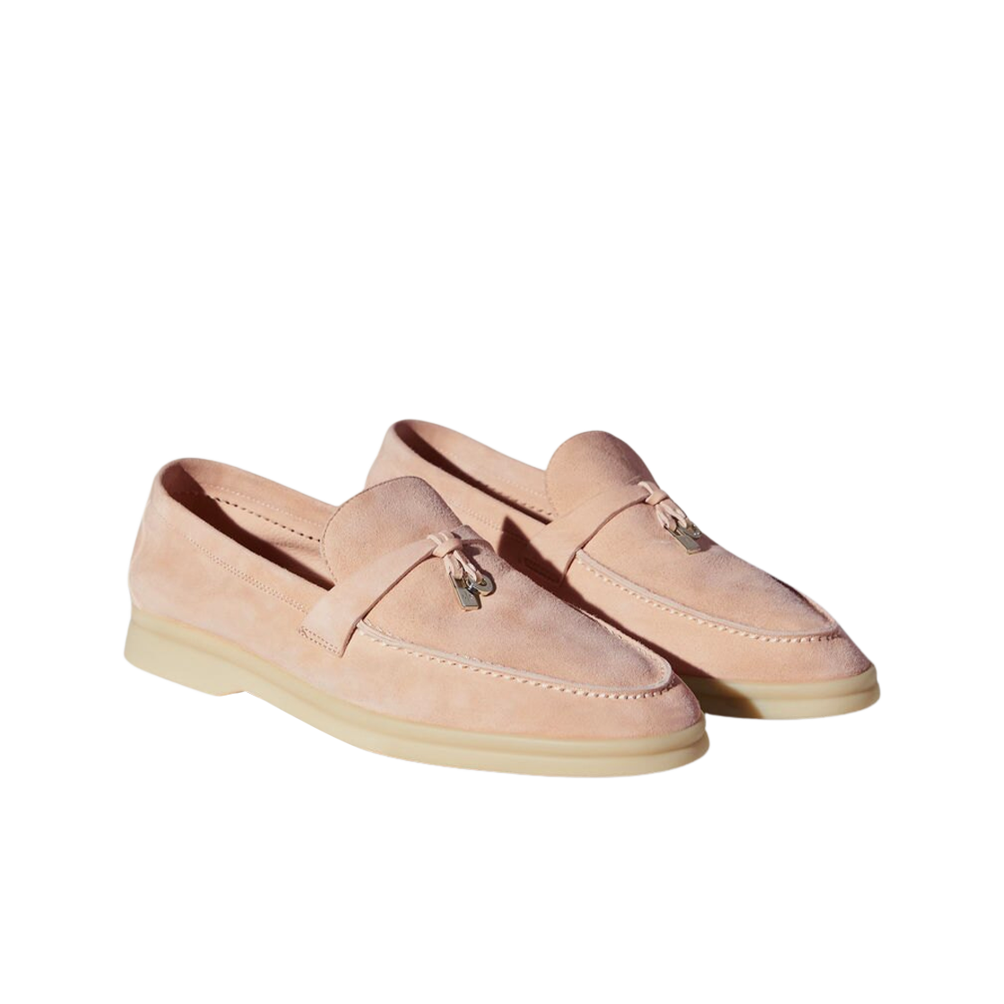 (W) 로로 피아나 썸머 참 워크 스웨이드 카프스킨 핑크 샌드