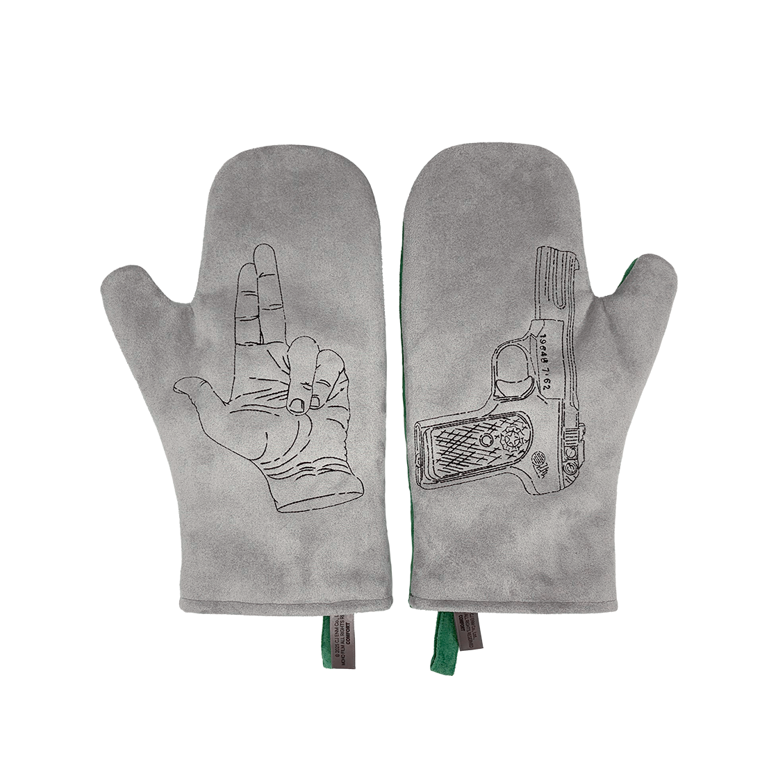 박찬욱 감독 신작 〈어쩔수가없다〉의 주인공 유만수의 장갑. 왼손에는 총을 쏘는 손 모양, 오른손에는 만수의 권총이 자수로 새겨져 있으며, 두 장갑이 한 세트로 구성되어 있습니다. 부드러운 스웨이드 감촉으로 가공된 원단을 사용해 착용감을 높였습니다.