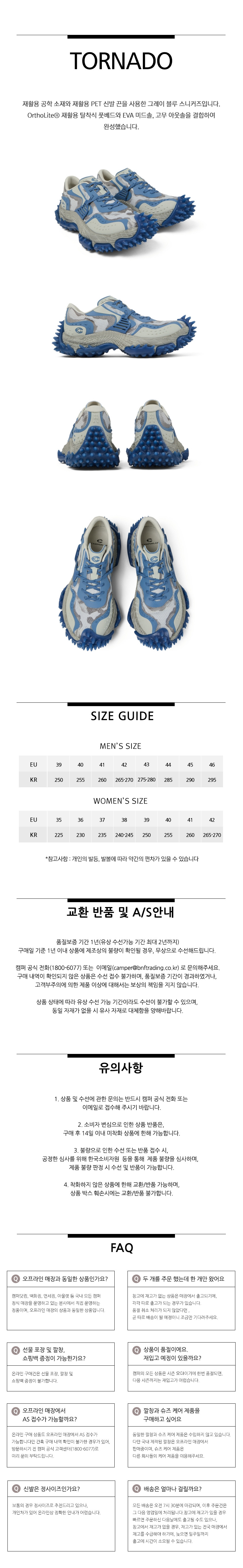 캠퍼 랩 토네이도 스니커즈 그레이블루