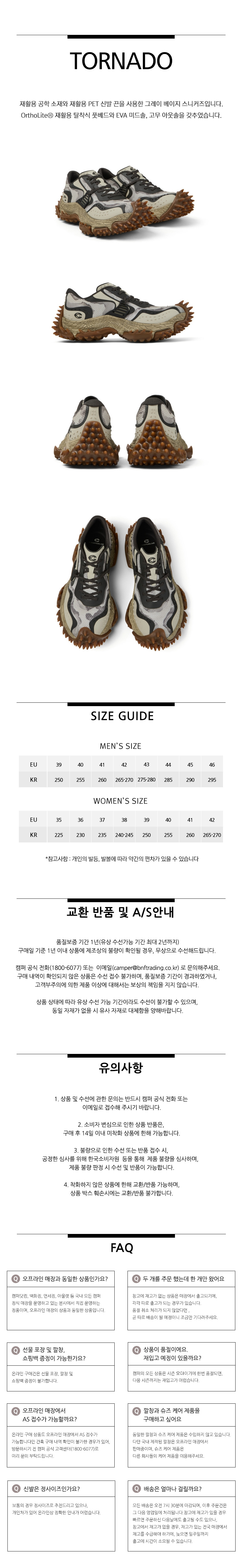 캠퍼 랩 토네이도 스니커즈 그레이베이지