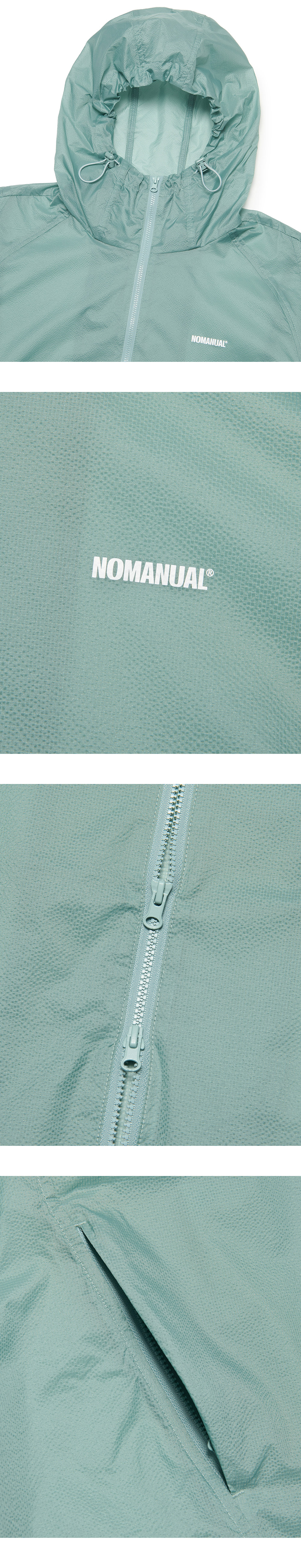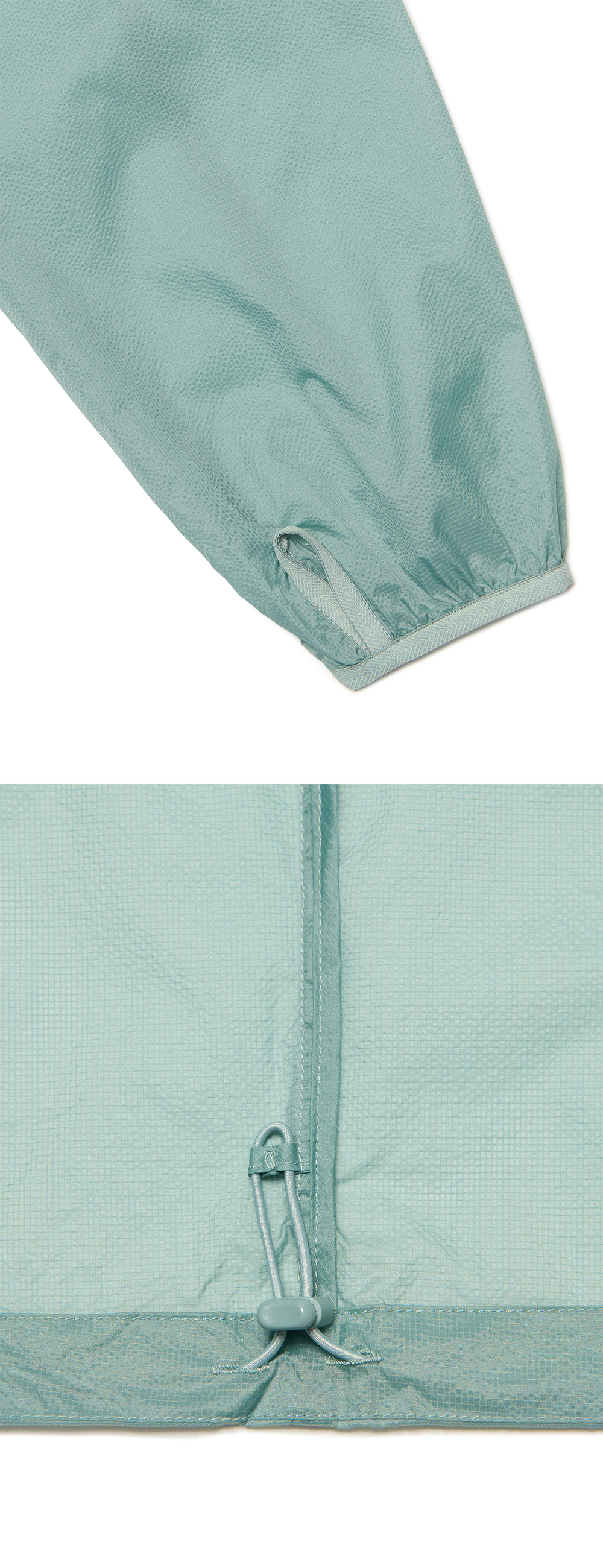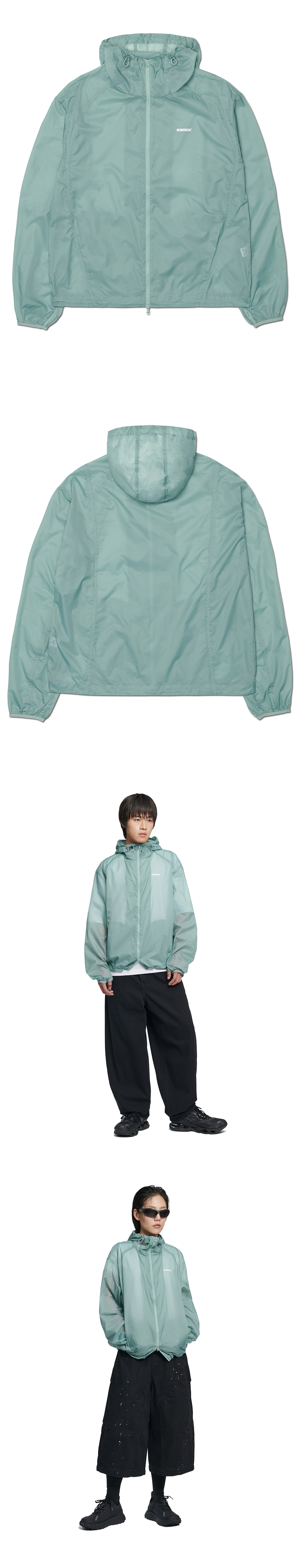 MODEL MAN : 180CM (L SIZE) WOMAN : 166CM (S SIZE) NYLON 100% THUMB HOLE DETAIL WAIST STRING * 두꺼운 폴리백 특성상 옷에 슬립제가 묻어나올 수 있습니다. 어두운 색 계열의 상품 구매시 보이는 슬립제는 불량의 사유가 아님을 알려드립니다.