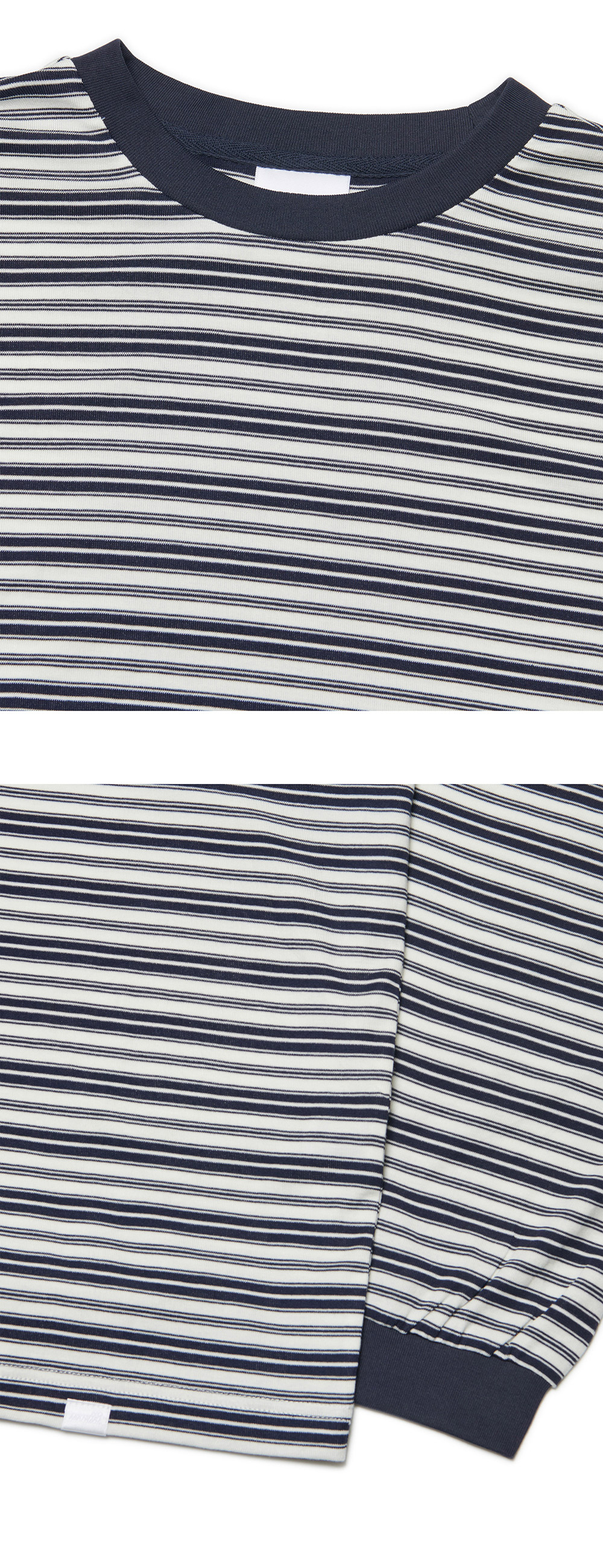 노매뉴얼 오프빗 스트라이프 롱 슬리브 티 블랙