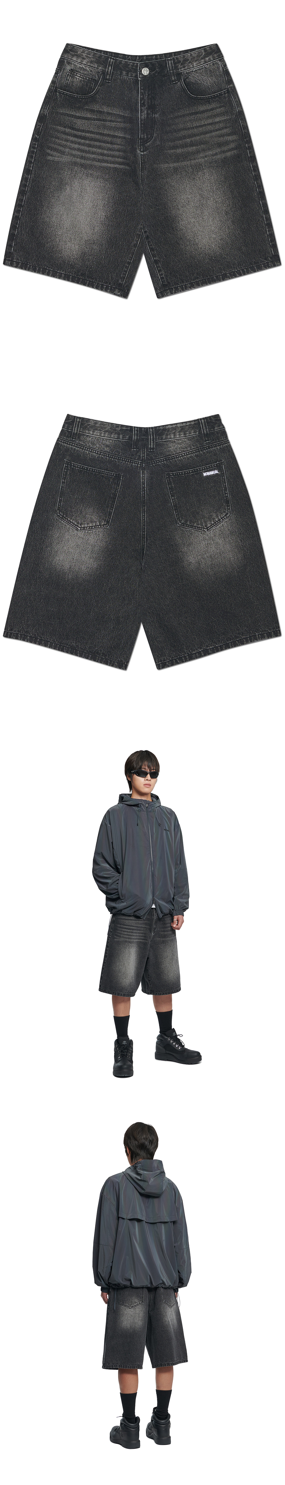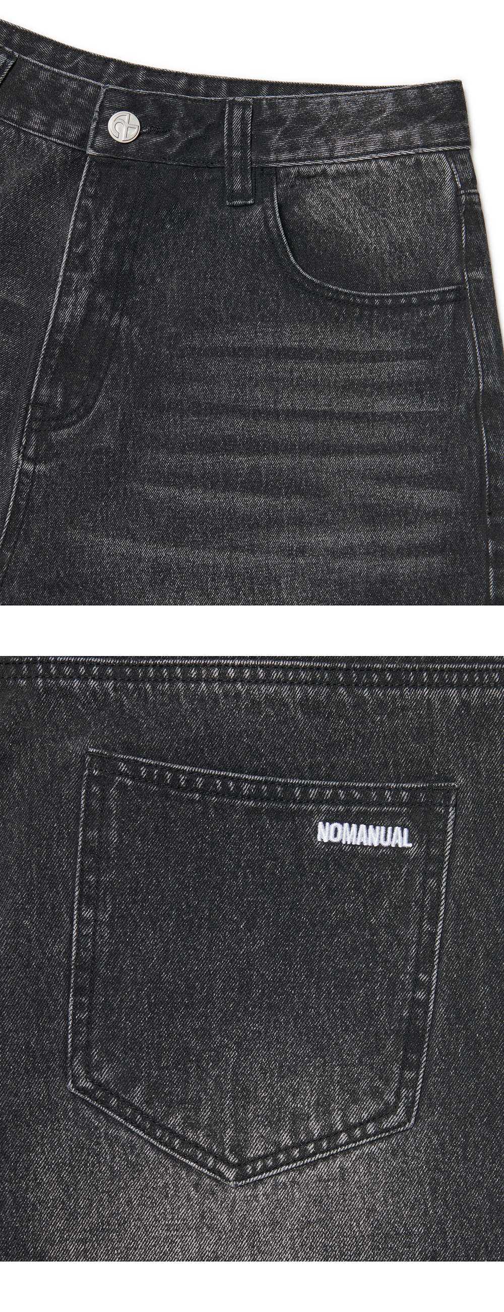 노매뉴얼 워시드 데님 하프 팬츠 워시드 블랙