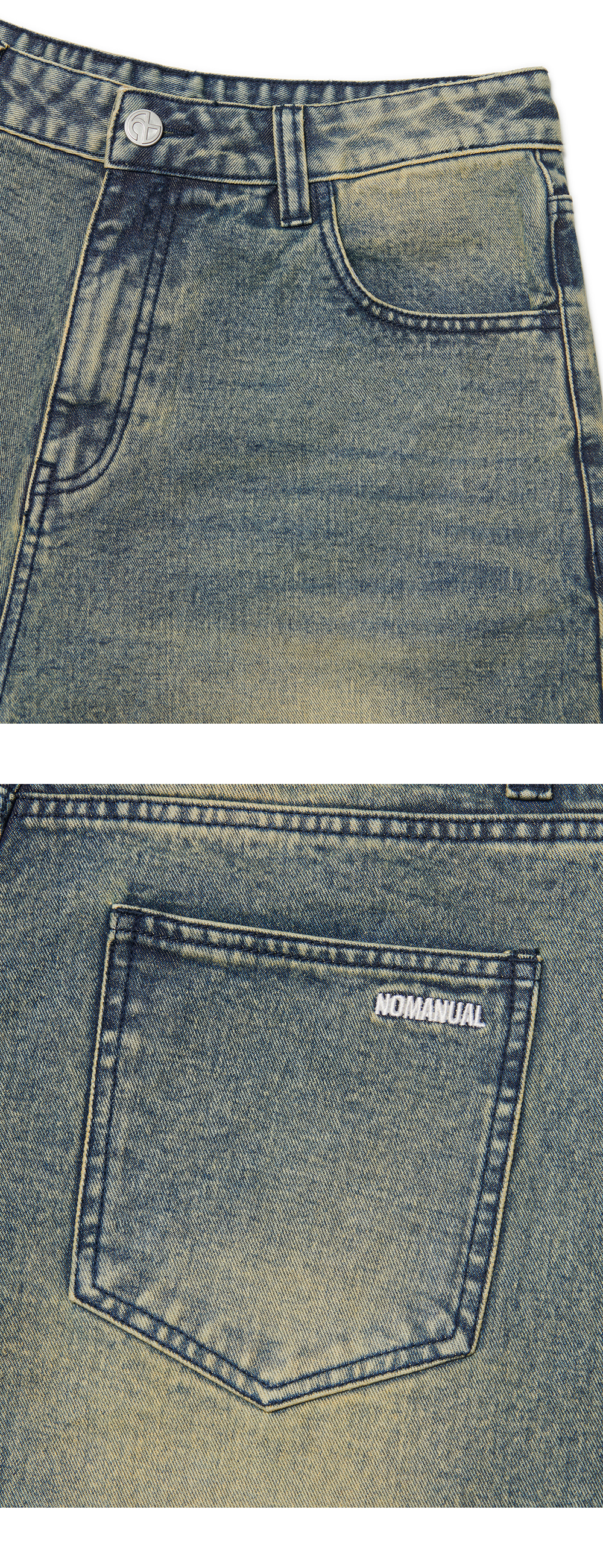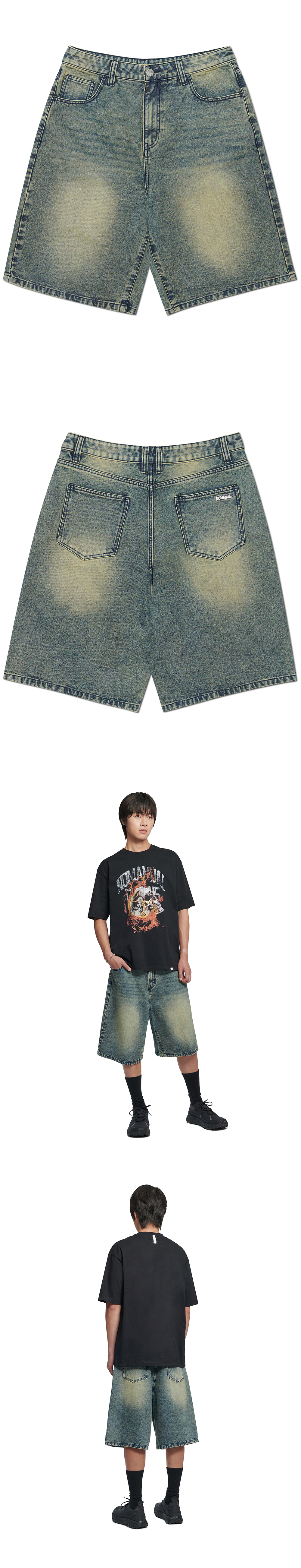 노매뉴얼 워시드 데님 하프 팬츠 워시드 블루