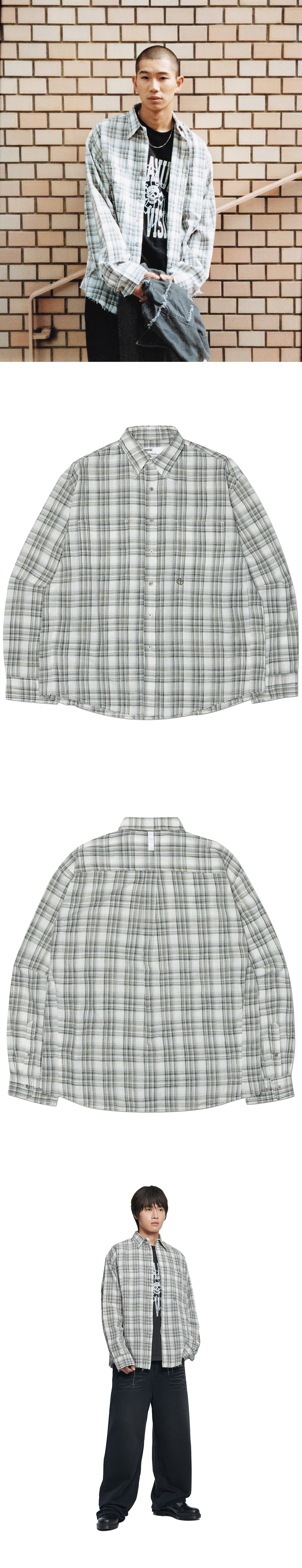 MODEL MAN : 180CM (L SIZE) POLYESTER 77% VISCOS 23% * 두꺼운 폴리백 특성상 옷에 슬립제가 묻어나올 수 있습니다. 어두운 색 계열의 상품 구매시 보이는 슬립제는 불량의 사유가 아님을 알려드립니다. made in china / 2026.01