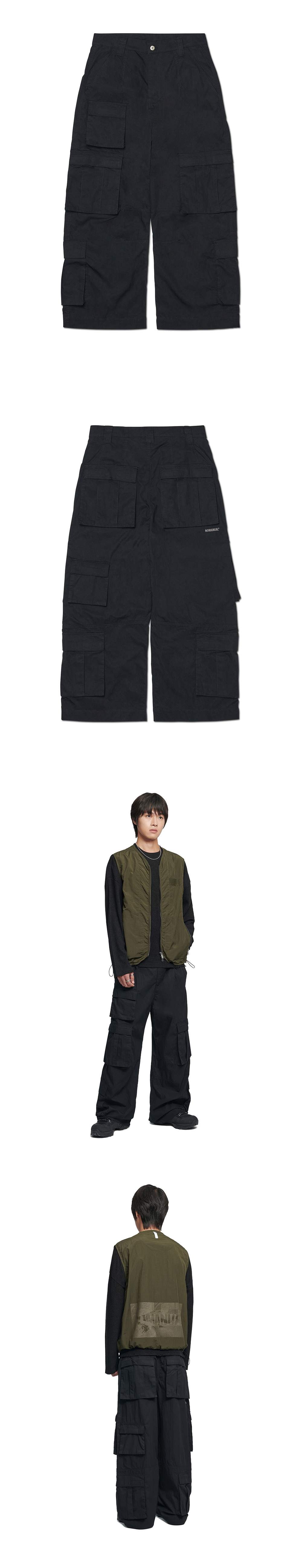 MODEL MAN : 180CM (L[33] SIZE) COTTON 76% NYLON 24% ZIPPER (YKK社) * 두꺼운 폴리백 특성상 옷에 슬립제가 묻어나올 수 있습니다. 어두운 색 계열의 상품 구매시 보이는 슬립제는 불량의 사유가 아님을 알려드립니다.