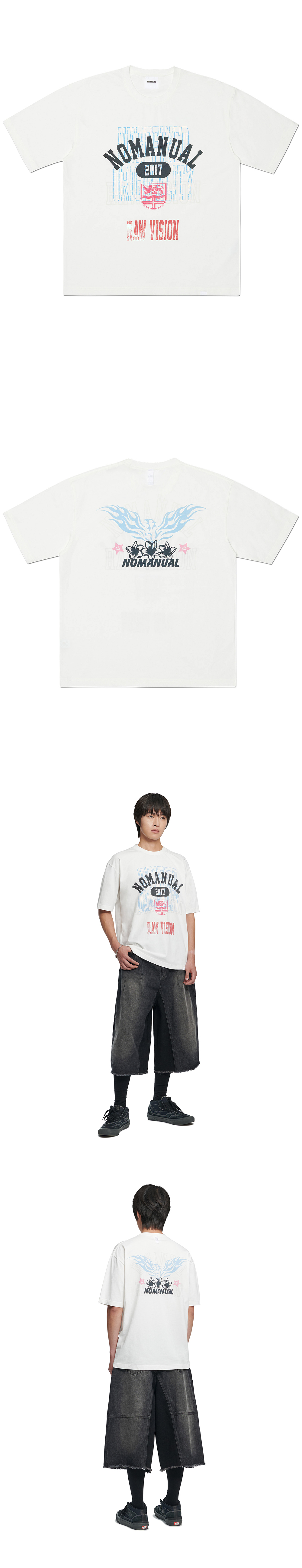 노매뉴얼 G.P 프린티드 티셔츠 빈티지 화이트