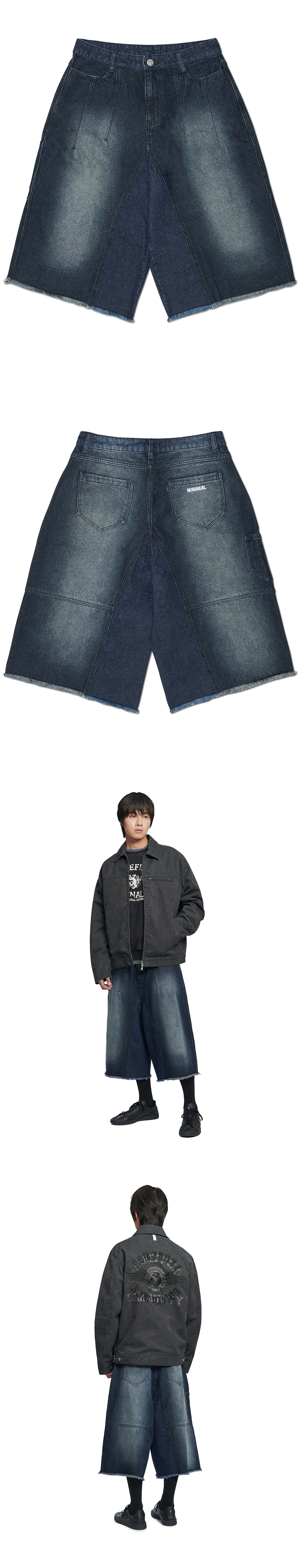 NOMANUAL D.T Washed Denim Bermuda Pants Washed Navy