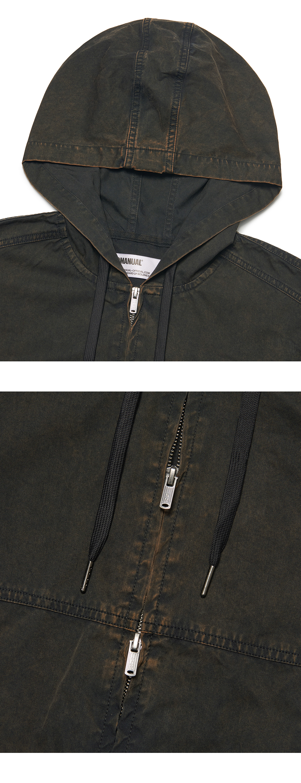 노매뉴얼 W.C 후디드 자켓 블리치드 블랙