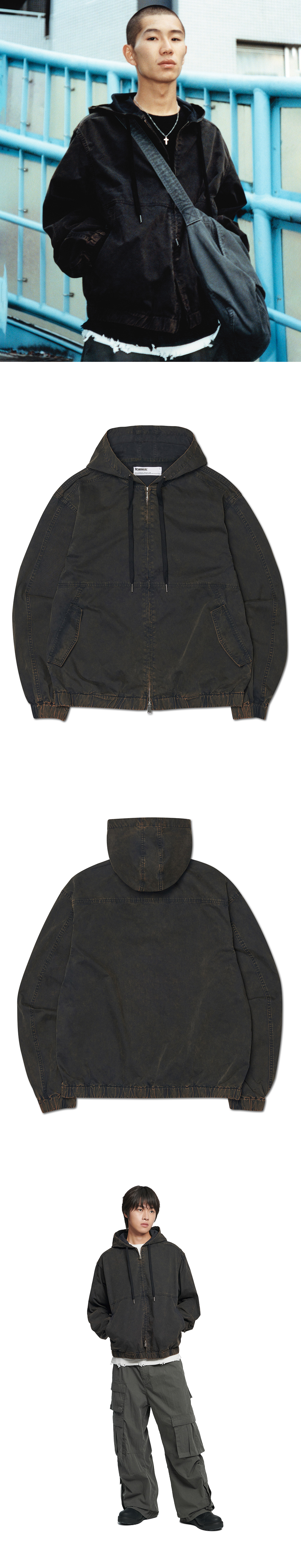 MODEL MAN : 180CM (L SIZE) COTTON 69% POLYESTER 31% 2WAY ZIPPER WIAST BANDING * 워싱 제품 특성상 개체 차이가 존재 합니다. * 두꺼운 폴리백 특성상 옷에 슬립제가 묻어나올 수 있습니다. 어두운 색 계열의 상품 구매시 보이는 슬립제는 불량의 사유가 아님을 알려드립니다.