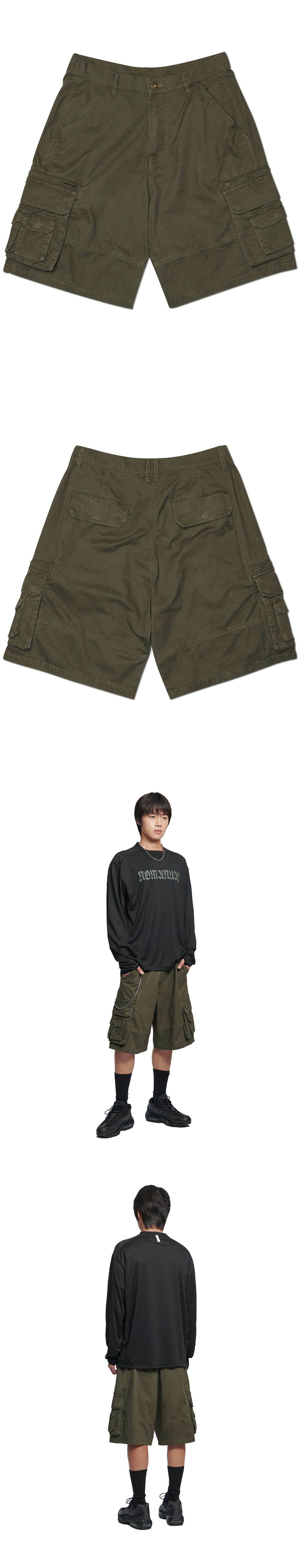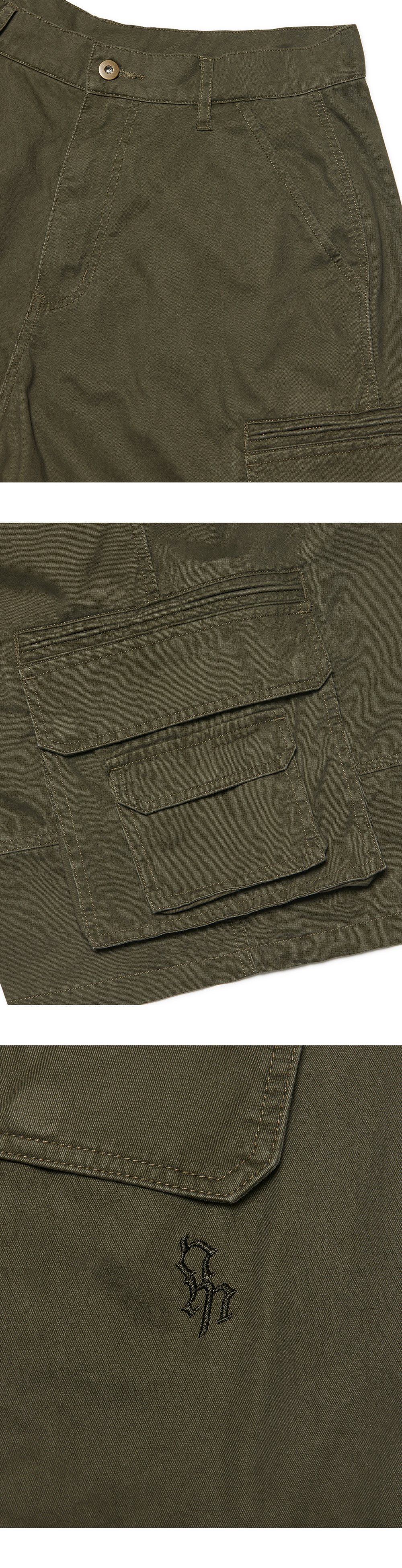노매뉴얼 워시드 카고 쇼츠 올리브
