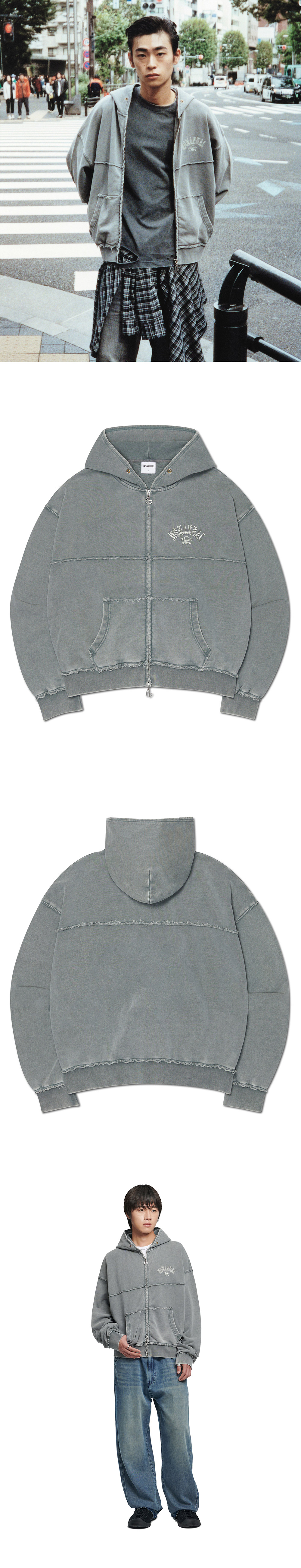 노매뉴얼 로우 엣지 후디드 집업 워시드 그레이
