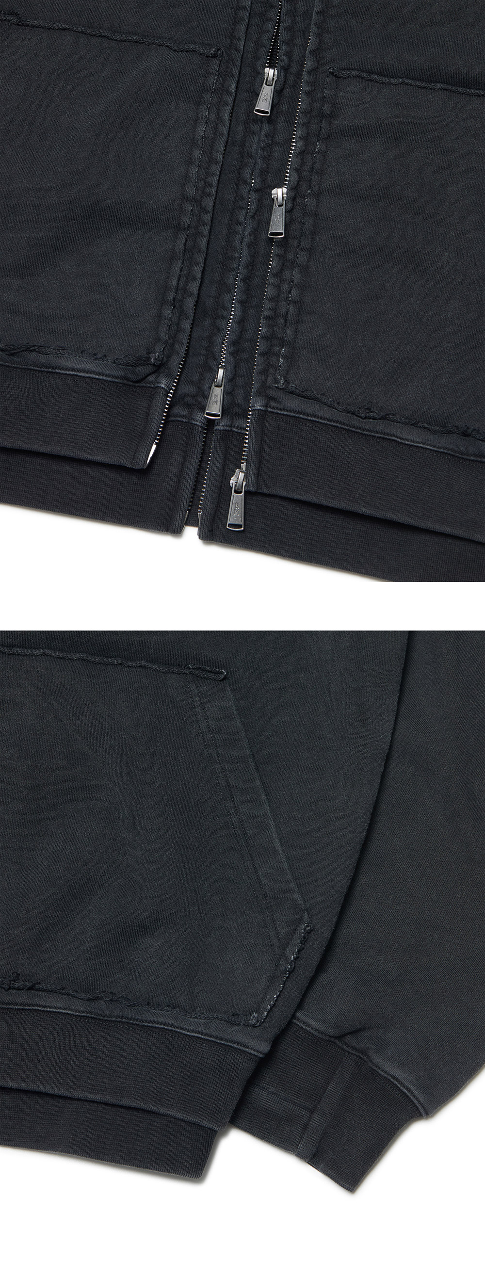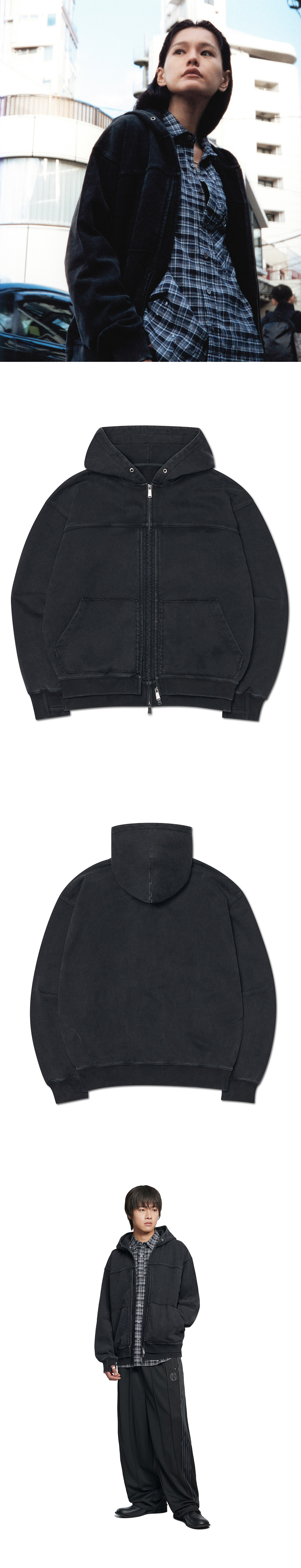 노매뉴얼 R.P 레이어 후디드 집업 워시드 블랙