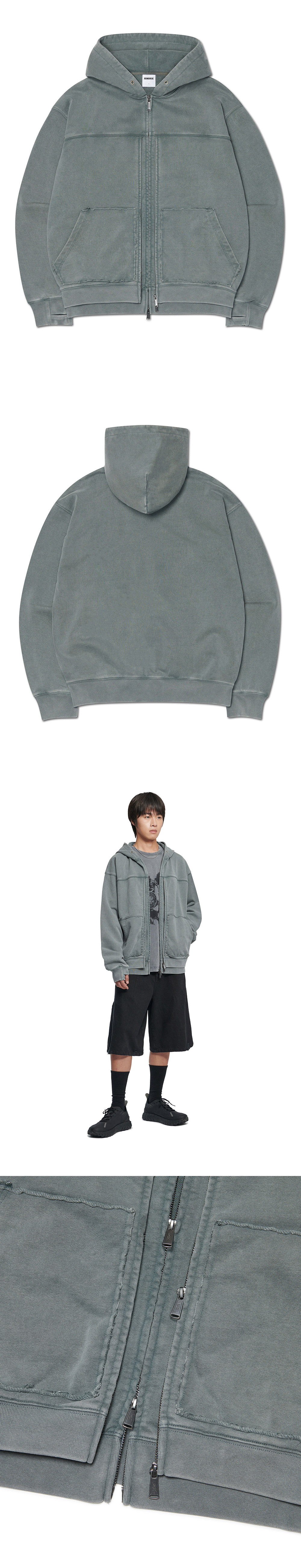 노매뉴얼 R.P 레이어 후디드 집업 워시드 그레이