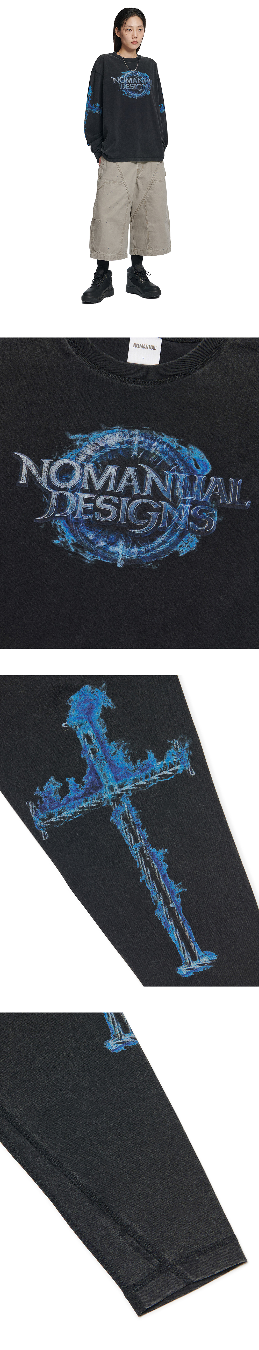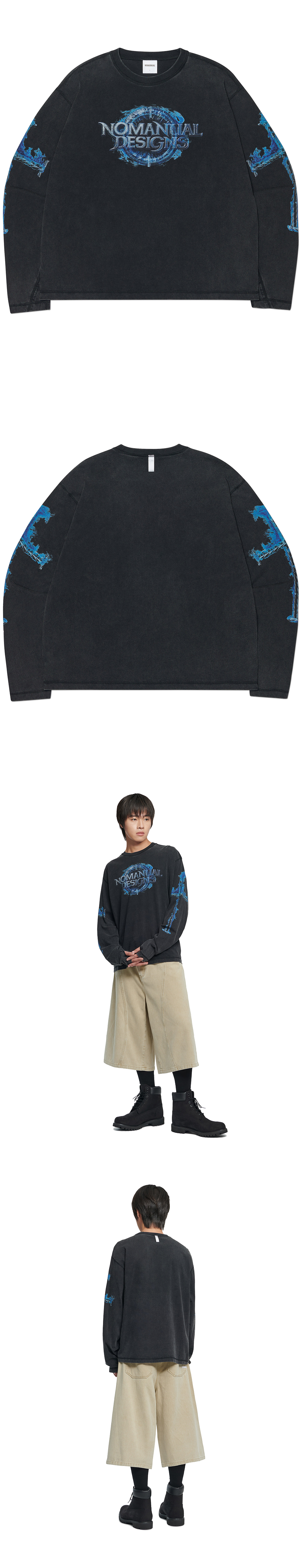 노매뉴얼 아크 코어 롱 슬리브 티 워시드 블랙