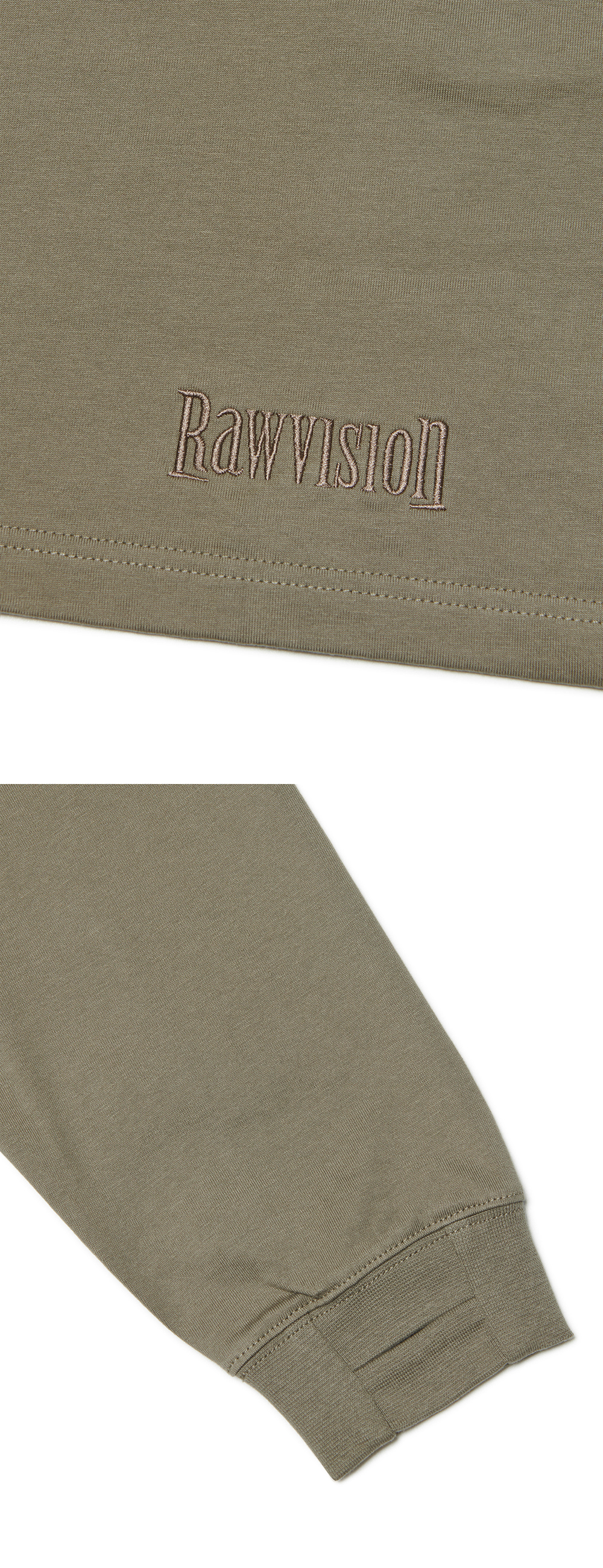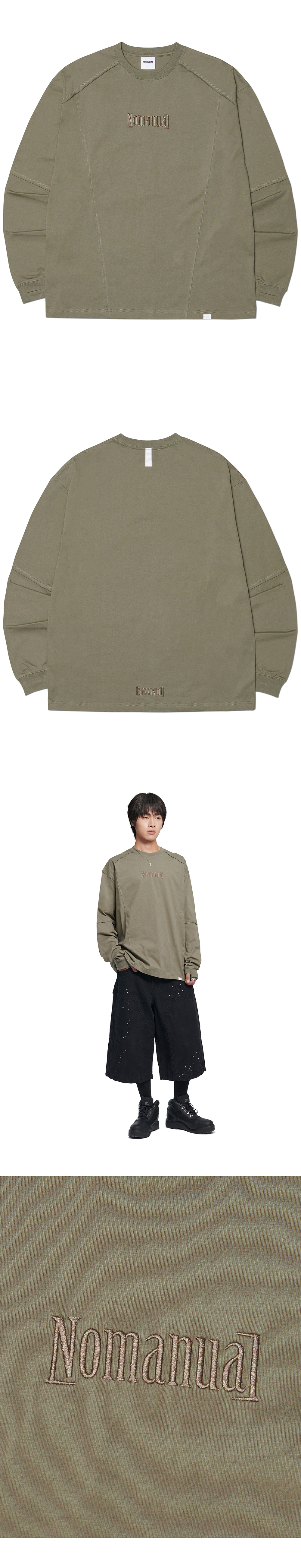노매뉴얼 엠브로이더 로고 롱 슬리브 티 카키