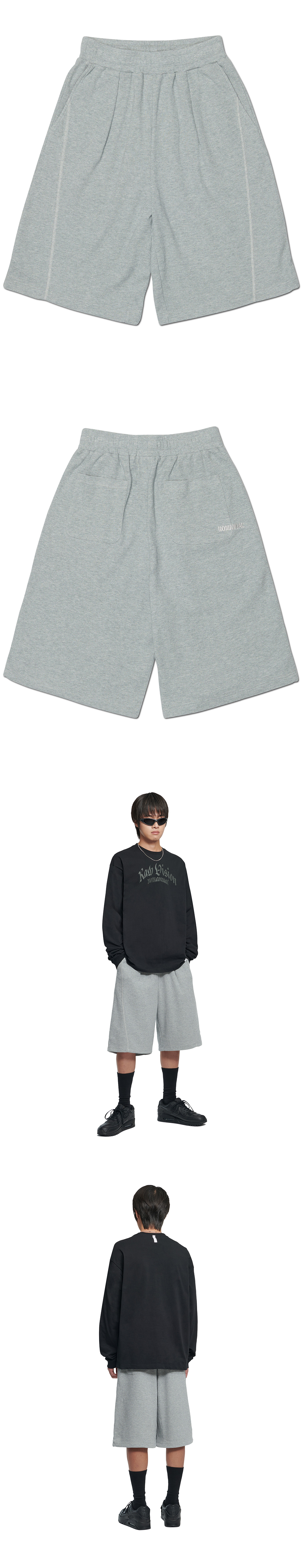 MODEL MAN : 180CM (L SIZE) COTTON 60% POLYESTER 40% WAIST BANDING WAIST STRING HEM STRING * 두꺼운 폴리백 특성상 옷에 슬립제가 묻어나올 수 있습니다. 어두운 색 계열의 상품 구매시 보이는 슬립제는 불량의 사유가 아님을 알려드립니다.