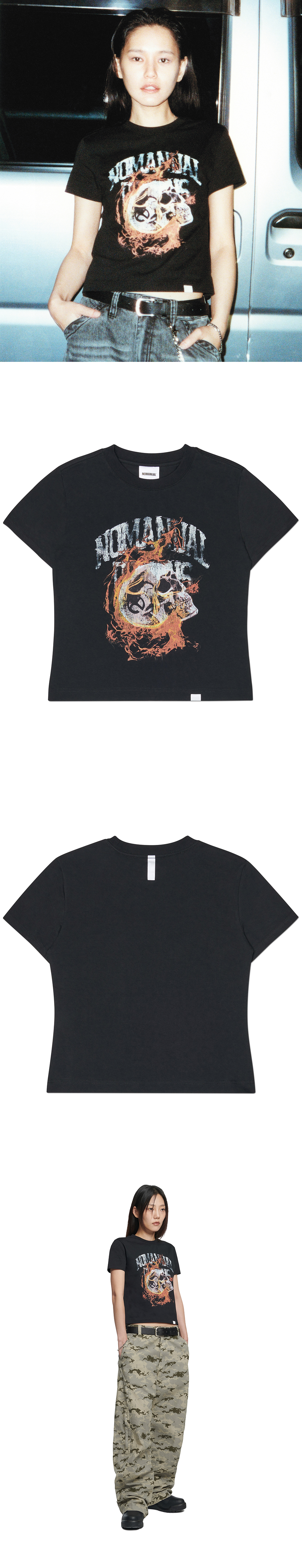 (W) 노매뉴얼 블레이징 스컬 티셔츠 블랙