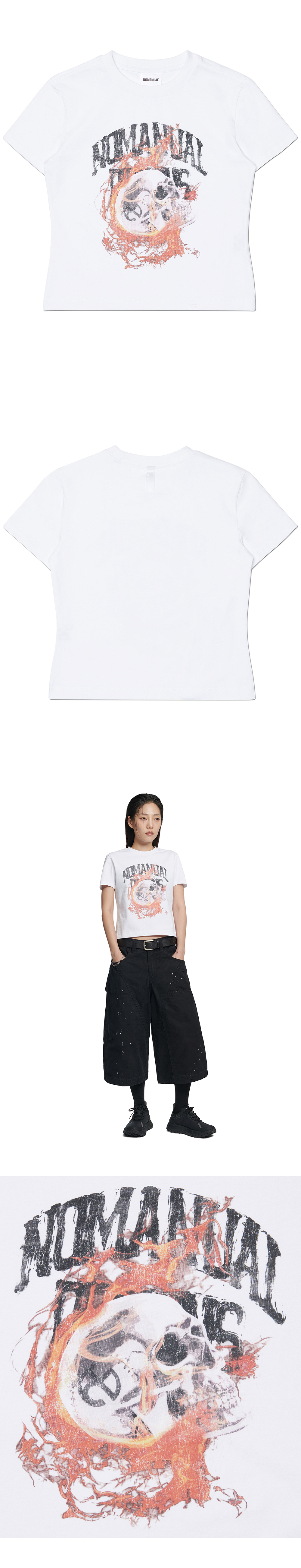 (W) 노매뉴얼 블레이징 스컬 티셔츠 화이트