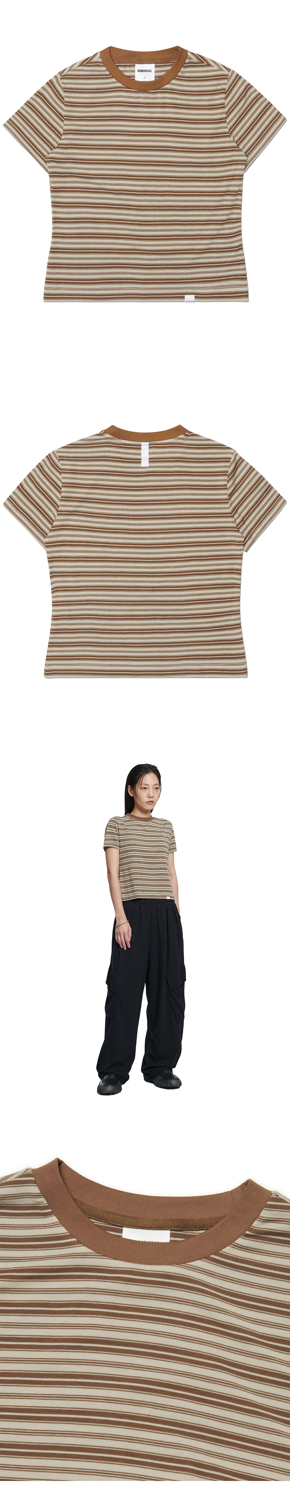 (W) 노매뉴얼 오프빗 스트라이프 티셔츠 브라운
