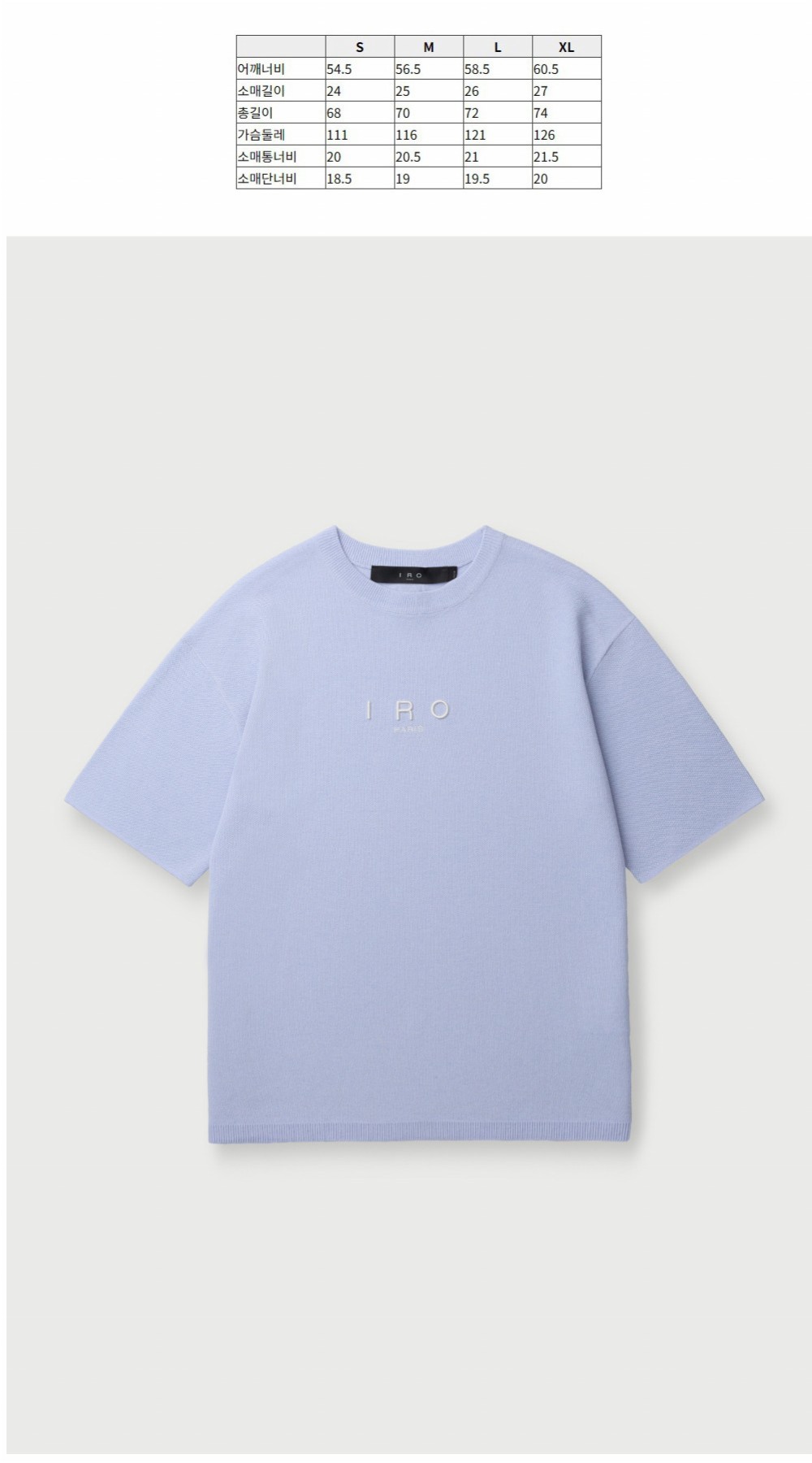 이로 네뷸라 베이직 로고 반팔 라운드 니트 라이트 블루