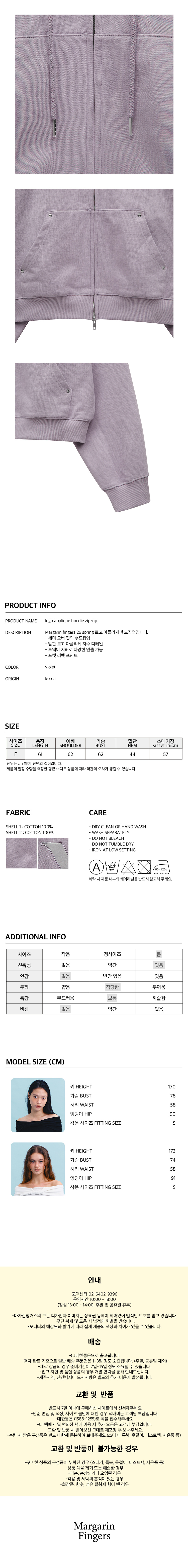 마가린핑거스 로고 아플리케 후드집업 바이올렛