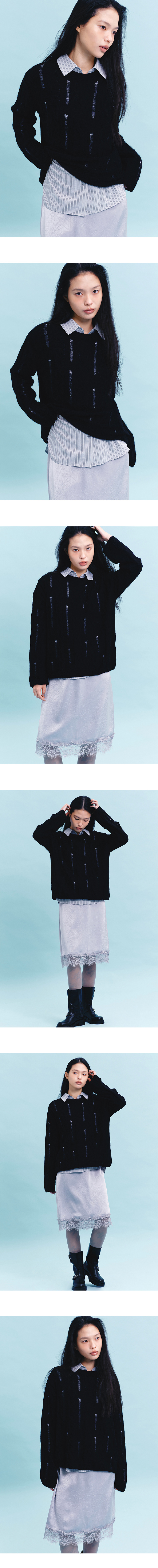마가린핑거스 케이블 데미지 풀오버 블랙