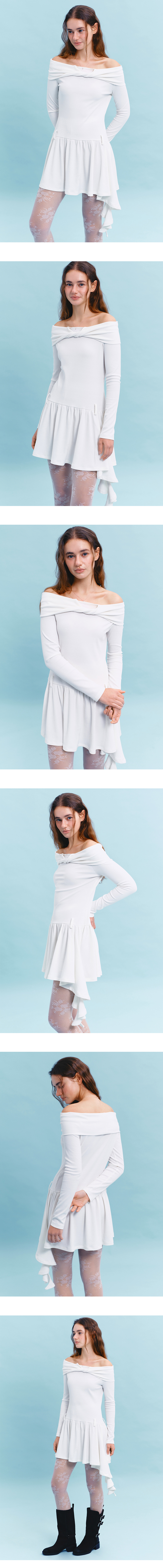 Margarin Fingers Off Shoulder Ruffle Dress Cream