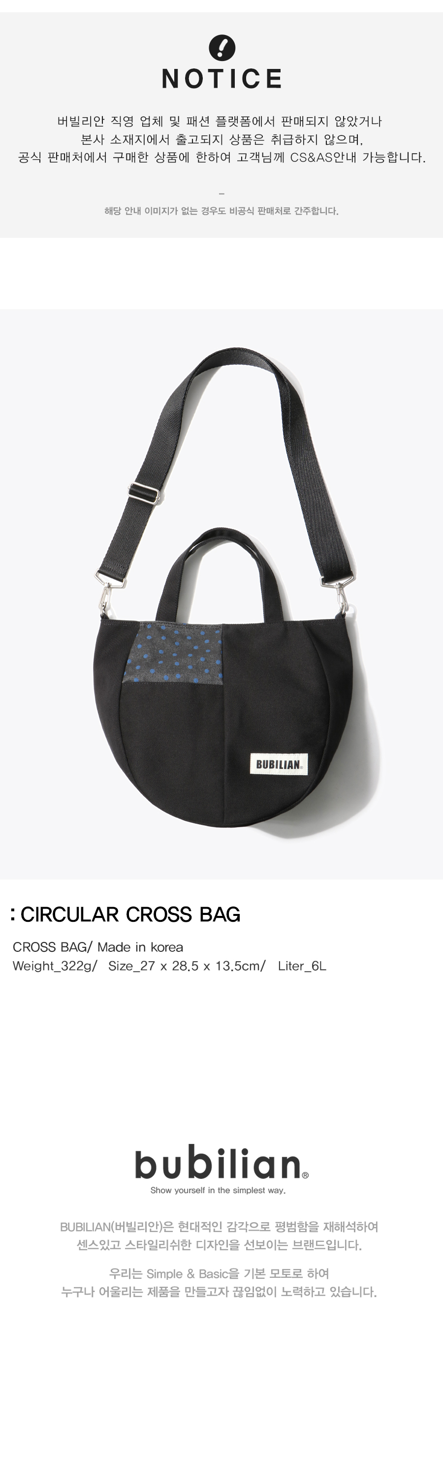 버빌리안 서큘러 크로스백 도트 블랙