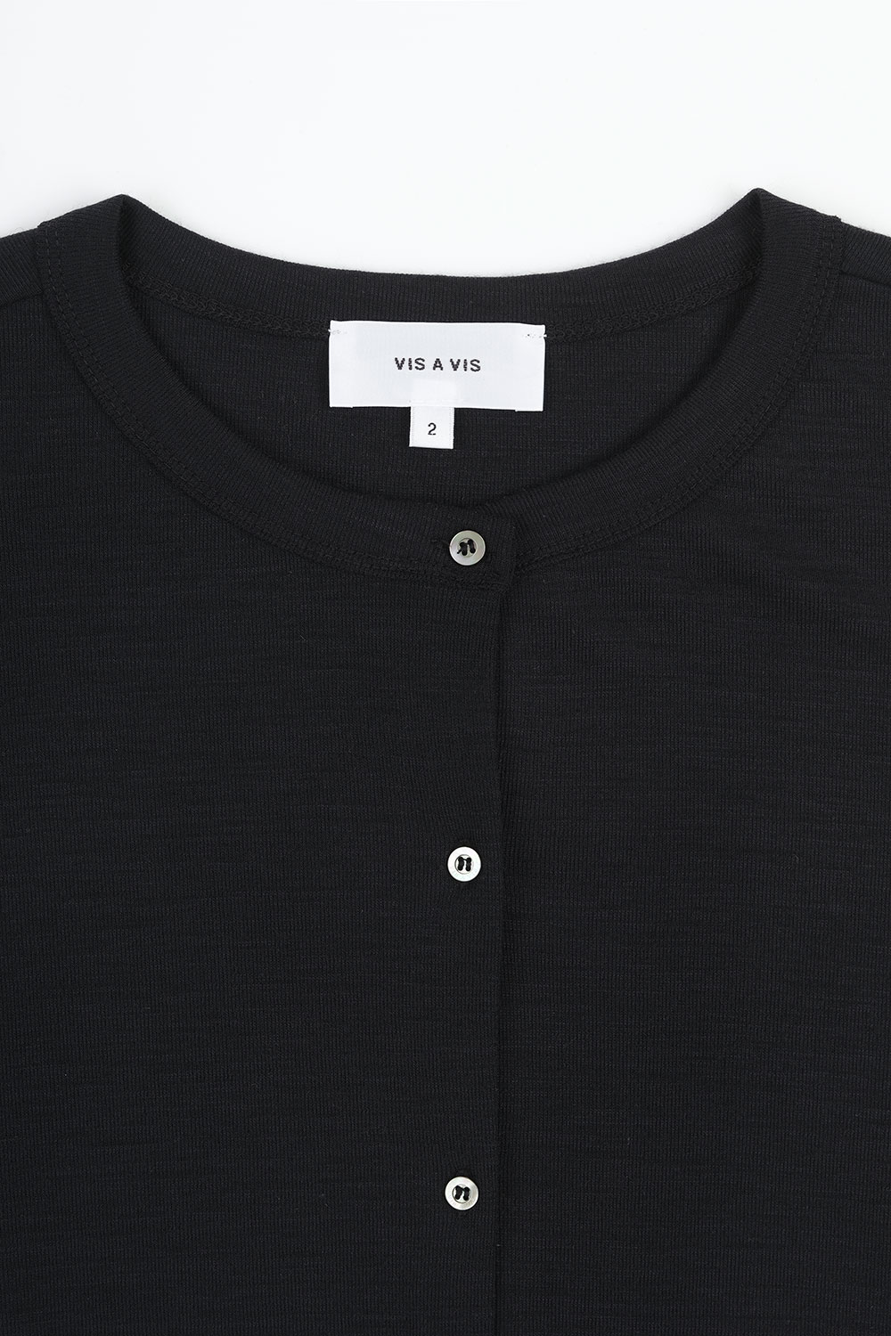 - 레귤러 핏의 라운드 넥 가디건 - 프리미엄 울 원단으로 부드러운 촉감과 유연한 착용감이 특징 - 옆선에 포인트 라벨 디테일 - 베스트, 탑과 셋업으로 착용 가능